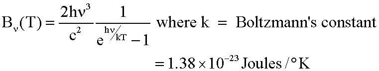 In quantum mechanics you will learn how to derive the following law which we will accept as correct (the text gives a partial derivation). If a perfectly black object is heated to some temperature T, it will emit radiation distributed across the spectrum according to the Black Body Law, also known as Planck's Law: