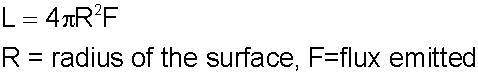 The luminosity of a source is the total flux emitted by an object integrated over the object's surface: